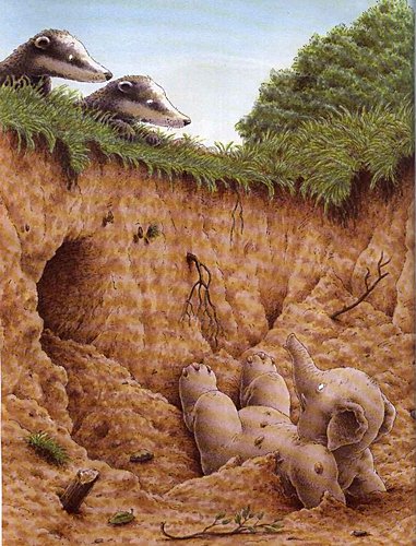 後來Ollie為了想當獾而學著挖地洞...