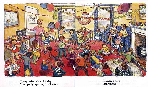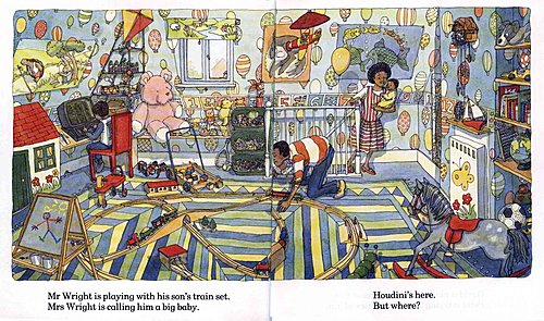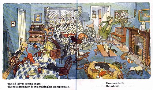 如果這本繪本只是介紹各式各樣的家,那麼這本書算是認知書,但是在透過尋找Houdini的這條線來串連成一個故事,這就是一本 認知型繪本歐!