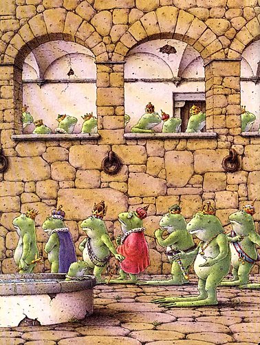 像是在青蛙王子的故事裏,創作繪本可能不讓青蛙最後變成人類的王子,也許娶一個同是青蛙國的公主比較不會有種族歧視的問題(Alix Berenzy 的A Frog Prince《追夢王子》 from 世界繪本五大獎精選)。